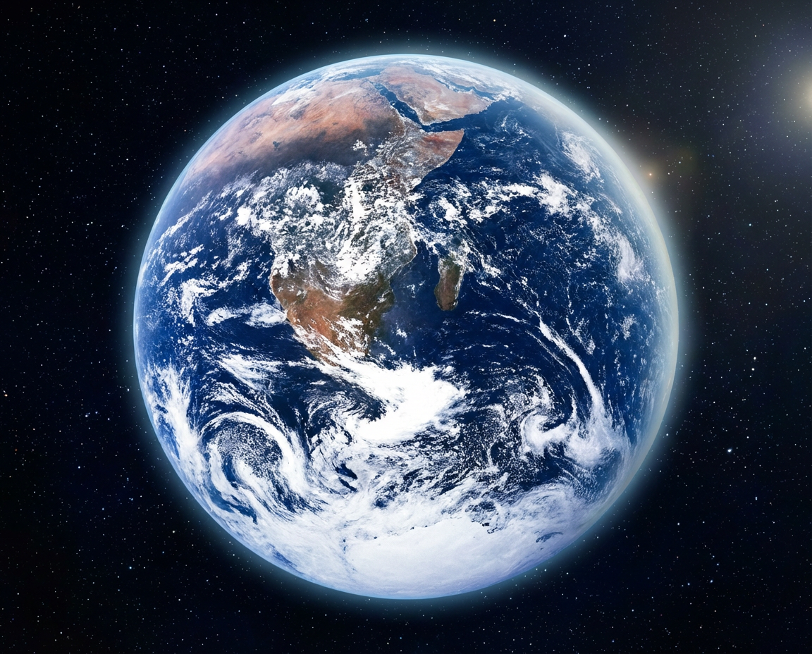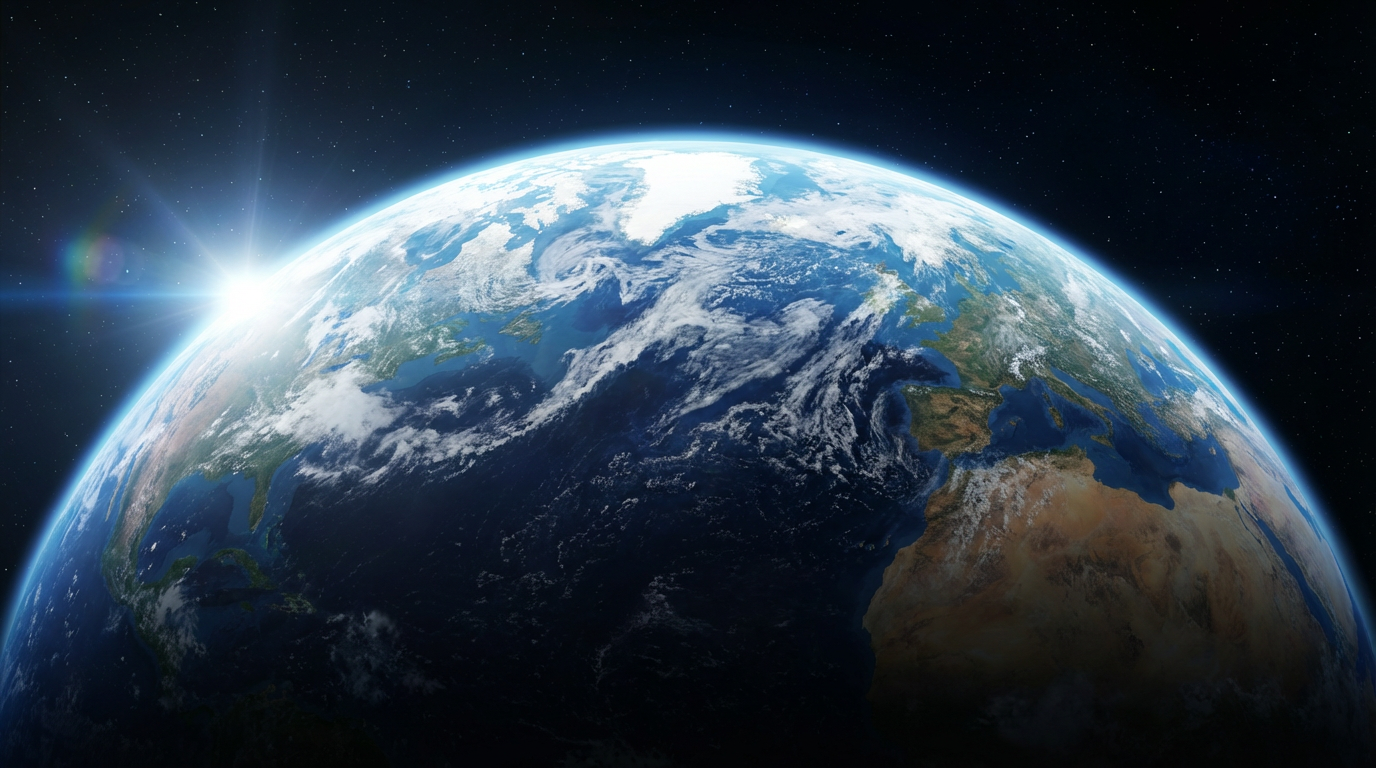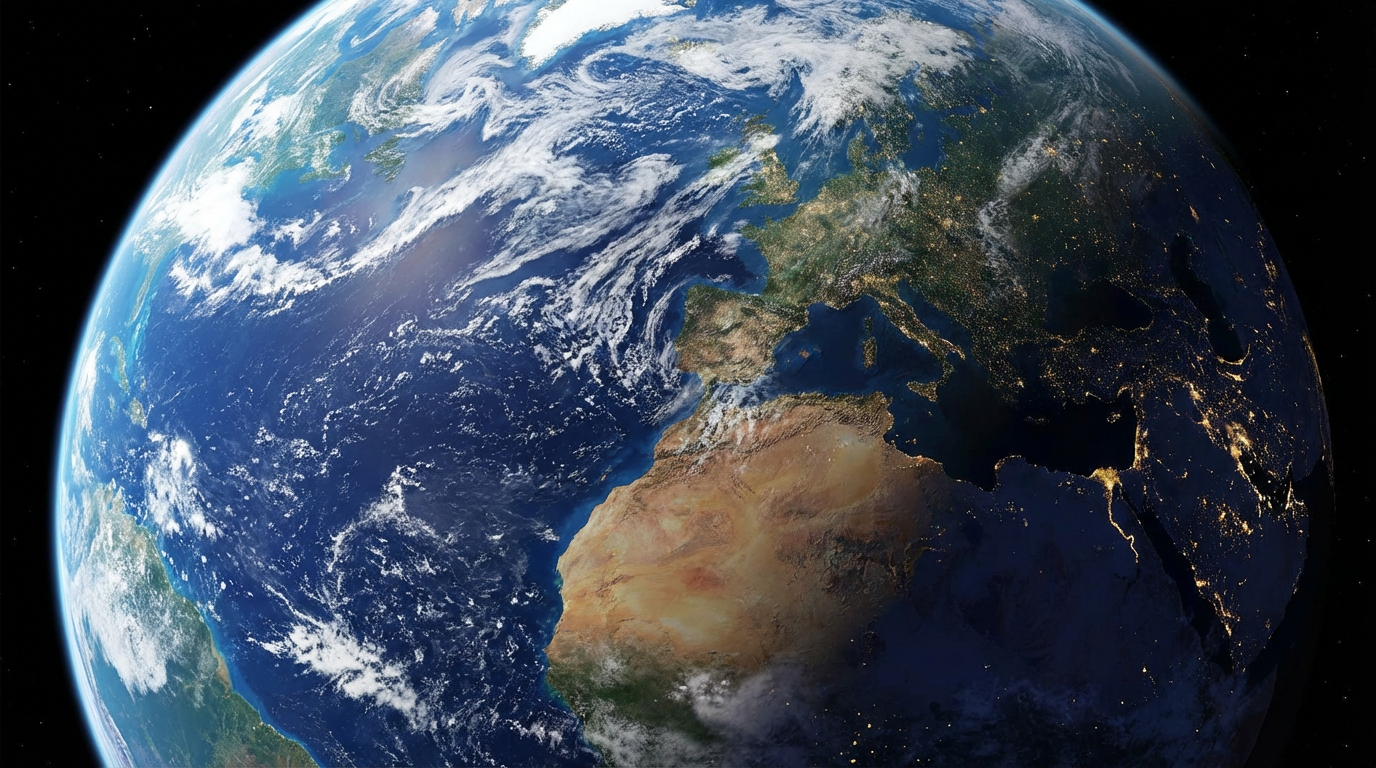 AI generated zoom out mimicking satellite perspectives to space.